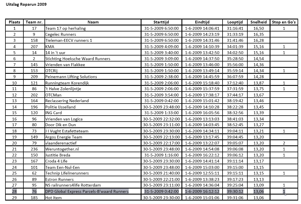 Voor de volledige uitslag zie: http://www.roparun.nl/downloads/regulier/2009-uitslag-Roparun-2009-op-positie.pdf