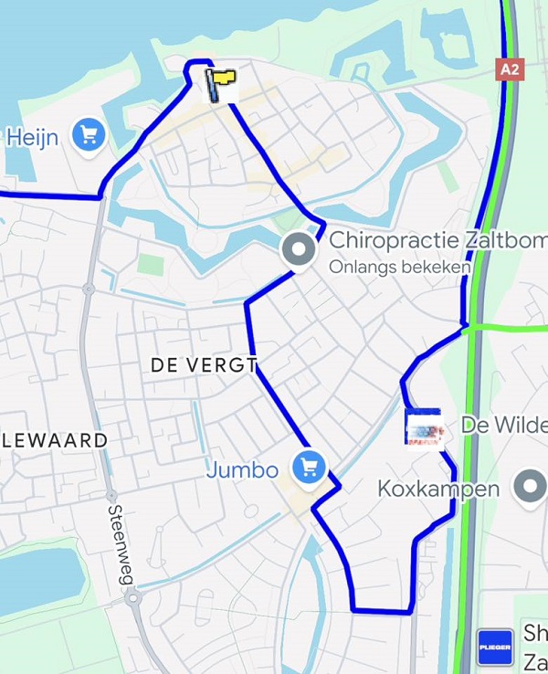 land terug via Lochem, Wageningen, Geldermalsen, Goudriaan en